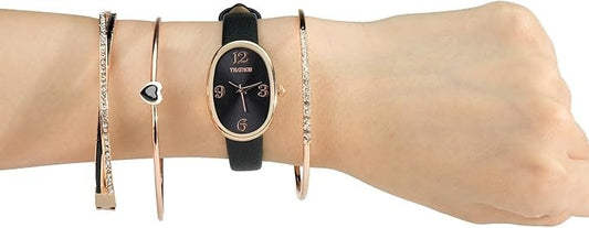 TIME100 Women's Watch & Bracelet Gift Set, Oval Dial