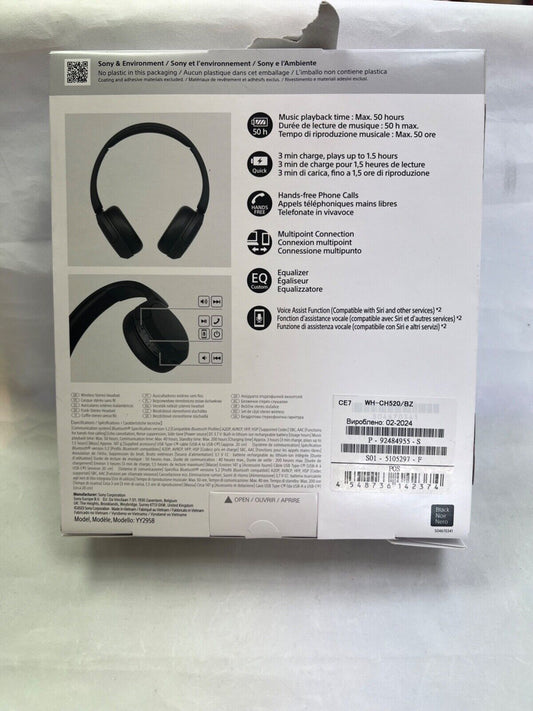 Sony WH-CH520 On the Ear Headphones - Black