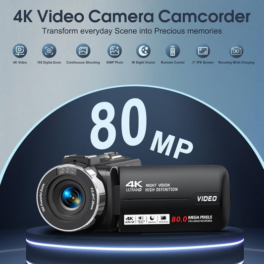 4K Video Camera Camcorder 80MP 18X Digital Zoom IR Night Vision Vlogging Camera