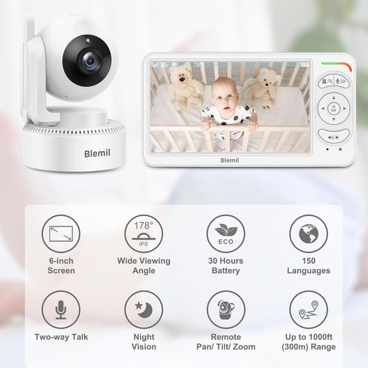 Blemil Baby monitor, Video Baby Monitor with 2 Cameras and Audio