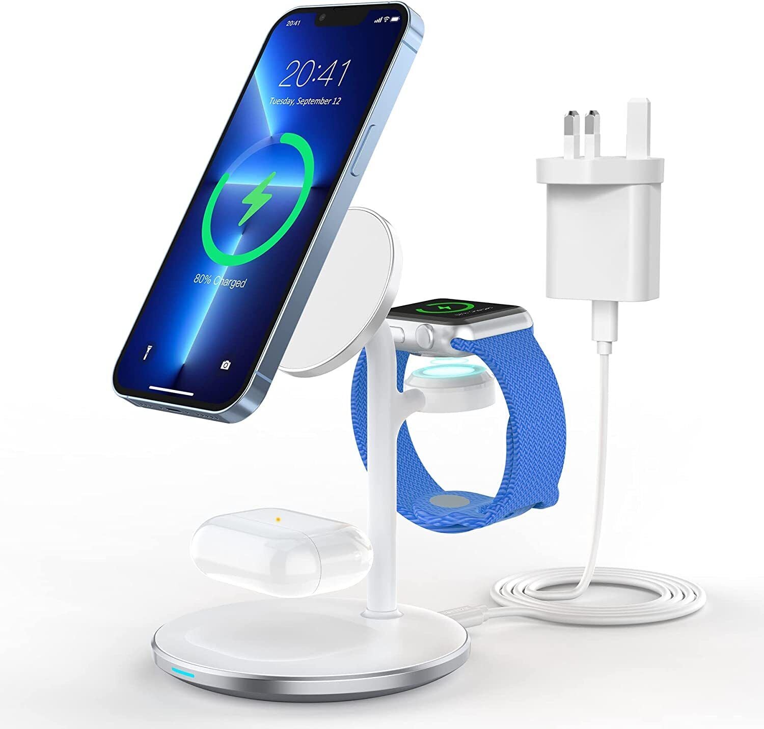 - 【What You Get】: 3-1 magnetic charging station (Compatible with iPhone 14/iPhone 14 Pro/iPhone 14 Pro Max/iPhone 14 Plus/iPhone 13/13 Mini/13 Pro/13 Pro max/12/12 Mini/12 Pro/12 Pro Max, iWatch 7/SE/6/5/4/3/2/1, AirPods 3/2 Pro); 18W QC 3.0 Charger(30% faster than other chargers); USB to Type C Cable(1m/3.3ft); User Manual; 24-hour Customer Service.