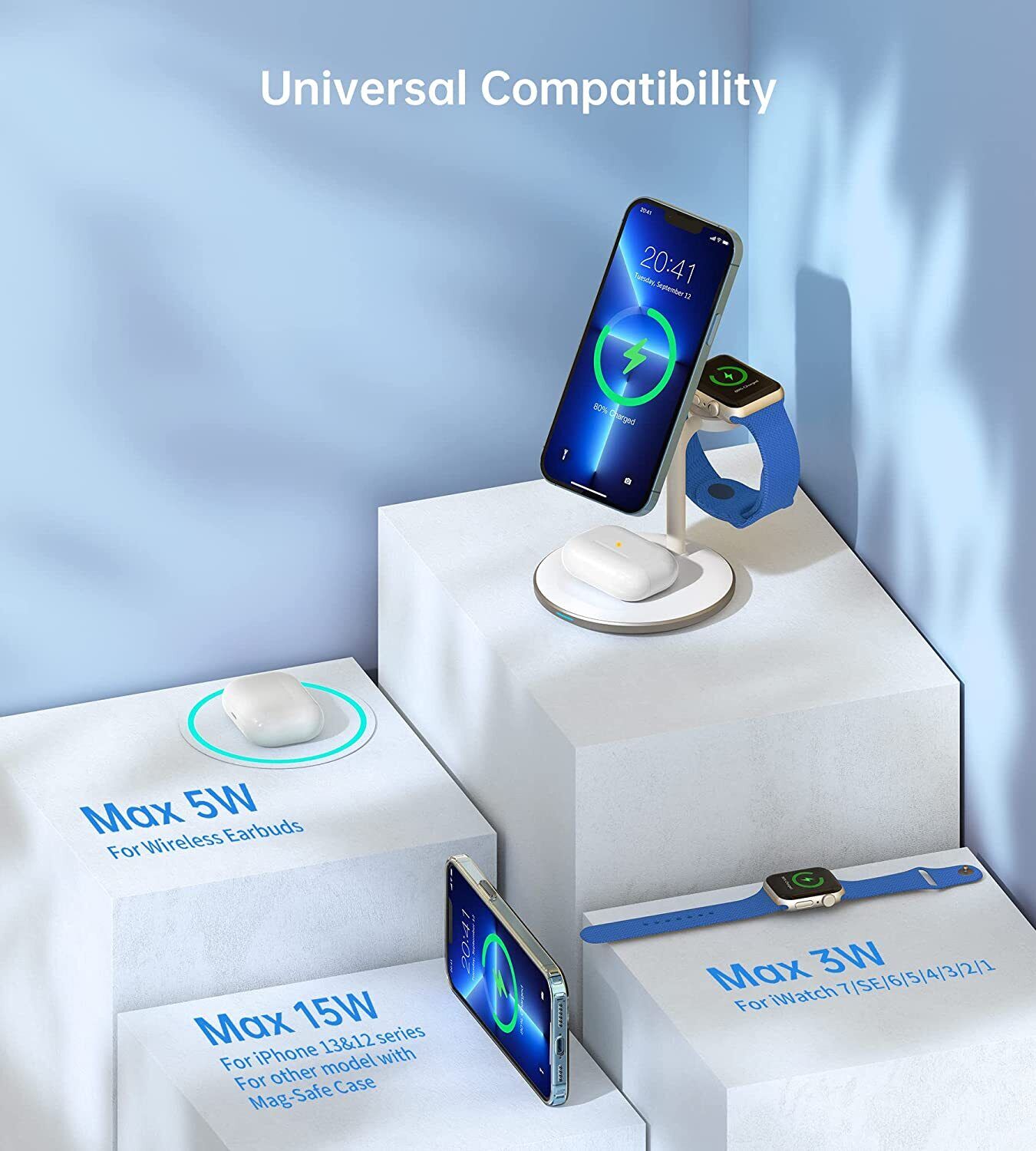 3 in 1 Wireless Charging Station, 15W Fast Wireless Mag-Safe Charger Stand Dock