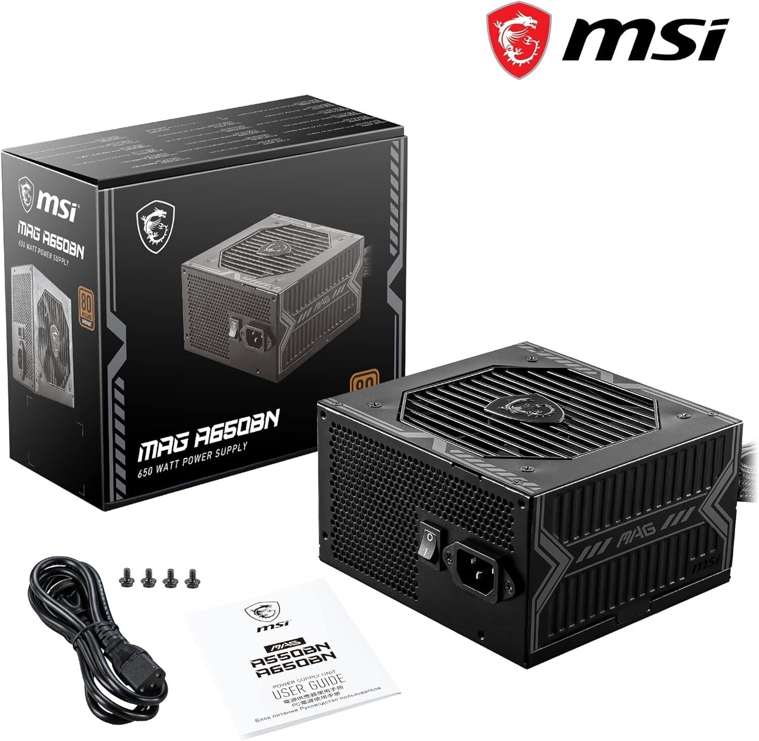 650W MSI MAG A650BN, Fully Wired, 80 PLUS Bronze, Single Rail, 54A, 120mm Fan, A