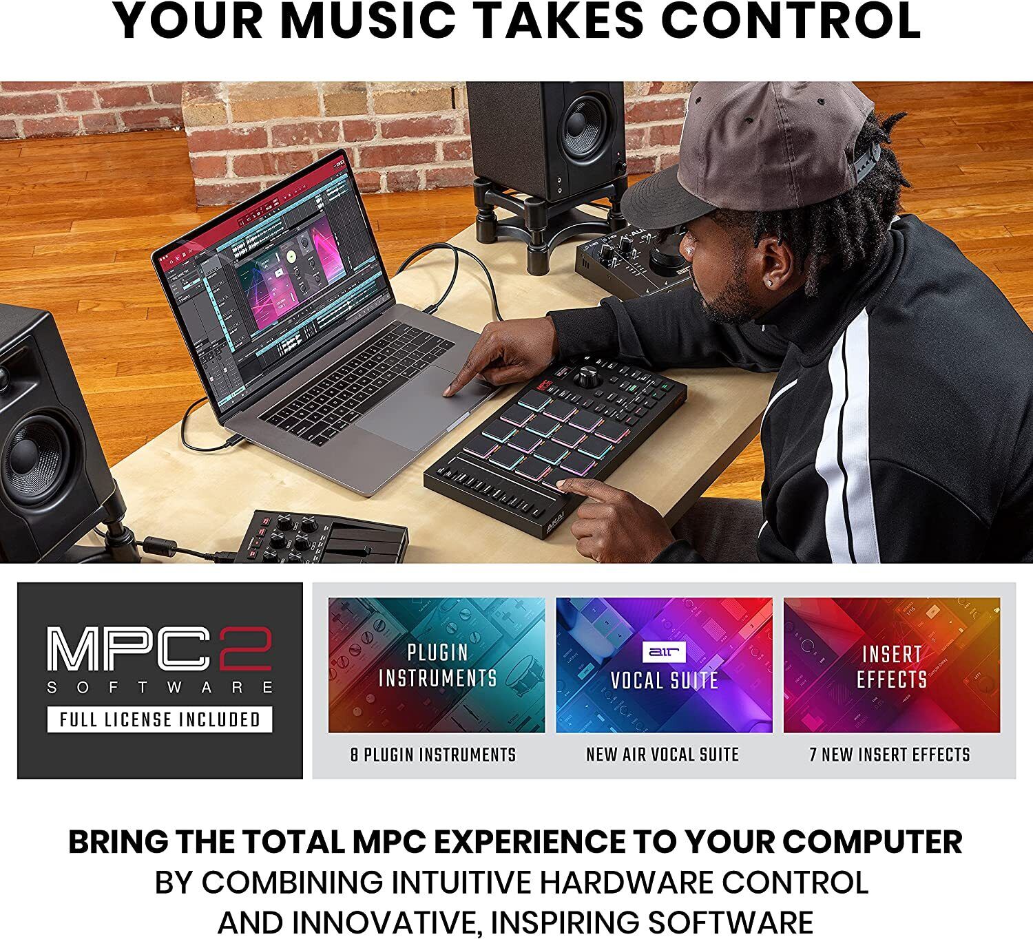 - Full Production Suite - MPC2 Software License Included - Redeem via product registration and download; 10 powerful instrument plugins, Studio Mixing & Mastering FX; Vocal Tuning, Harmoniser & Doubler