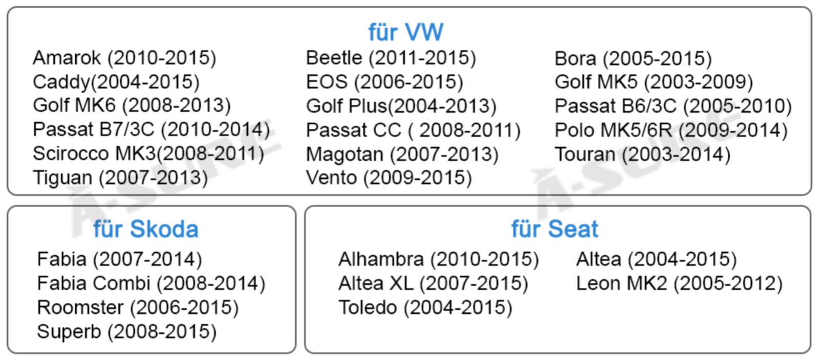 The radio does NOT support VW original reversing cameras, so you need an extra adapter (buyer bears the cost of the adapter, around EUR 70). If you have a VW original rear view camera, please contact A-Sure for more info about the adapter before purchasing