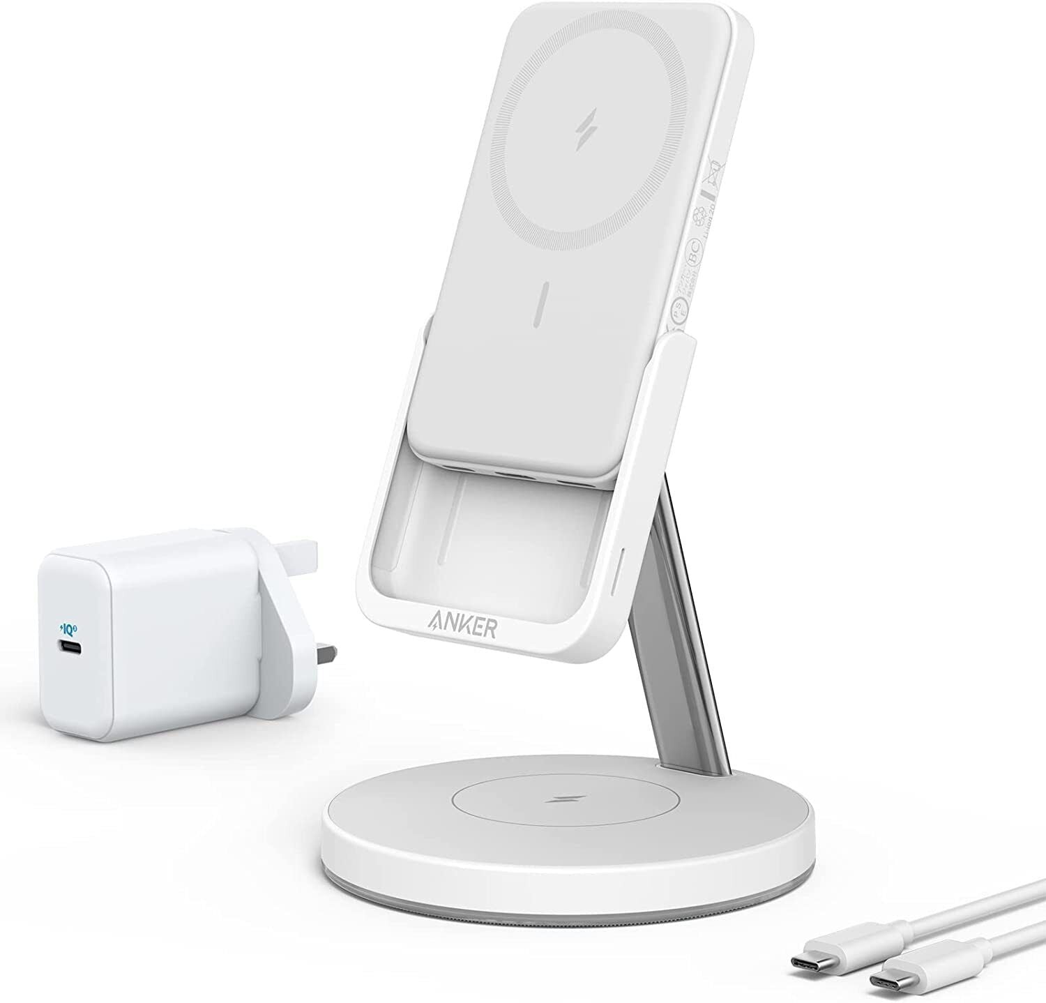 - What You Get: Anker 633 Magnetic Wireless Charger (MagGo) with wireless charging base and 5,000 mAh wireless charging portable charger, 25W USB-C power adapter, 5 ft (1.5 m) USB-C cable, welcome guide