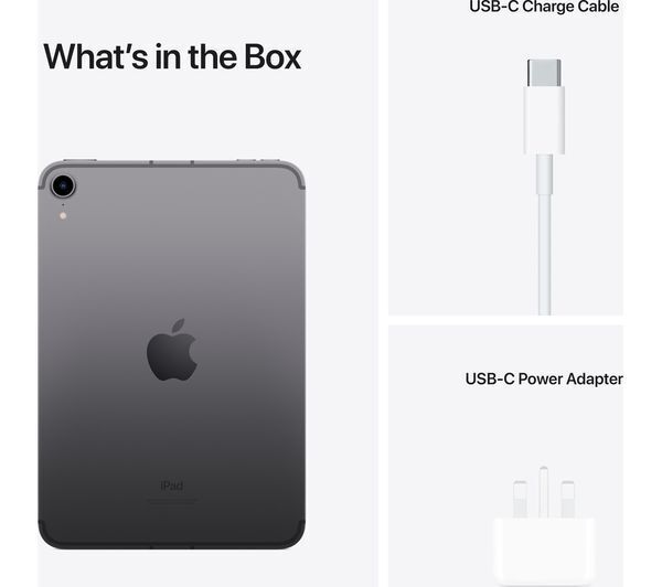 APPLE 8.3" iPad mini Cellular (2021) - 64 GB, Space Grey, iPadOS, Liquid Retina display, 64 GB storage: Perfect for apps / photos / videos / games, Battery life: Up to 10 hours, Compatible with Apple Pencil (2nd generation), AirPlay