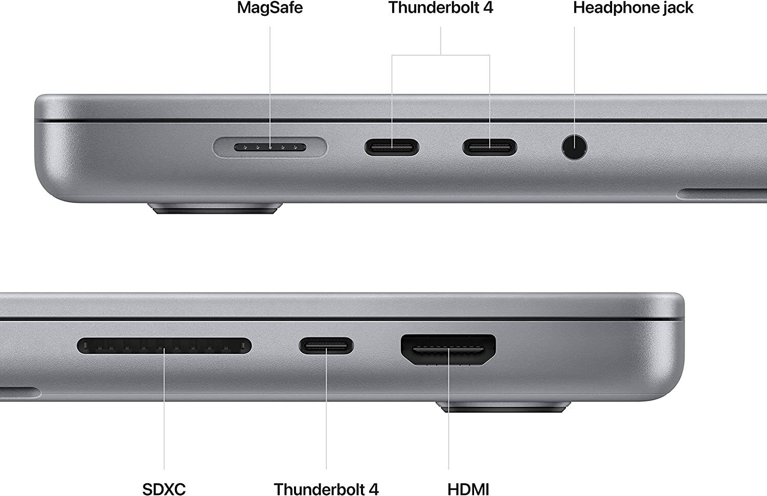 - CONNECT WHAT YOU WANT — MacBook Pro features a MagSafe charging port, three Thunderbolt 4 ports, an SDXC card slot, an HDMI port and a headphone jack. And enjoy seamless wireless connectivity with Wi-Fi 6E and Bluetooth 5.3.