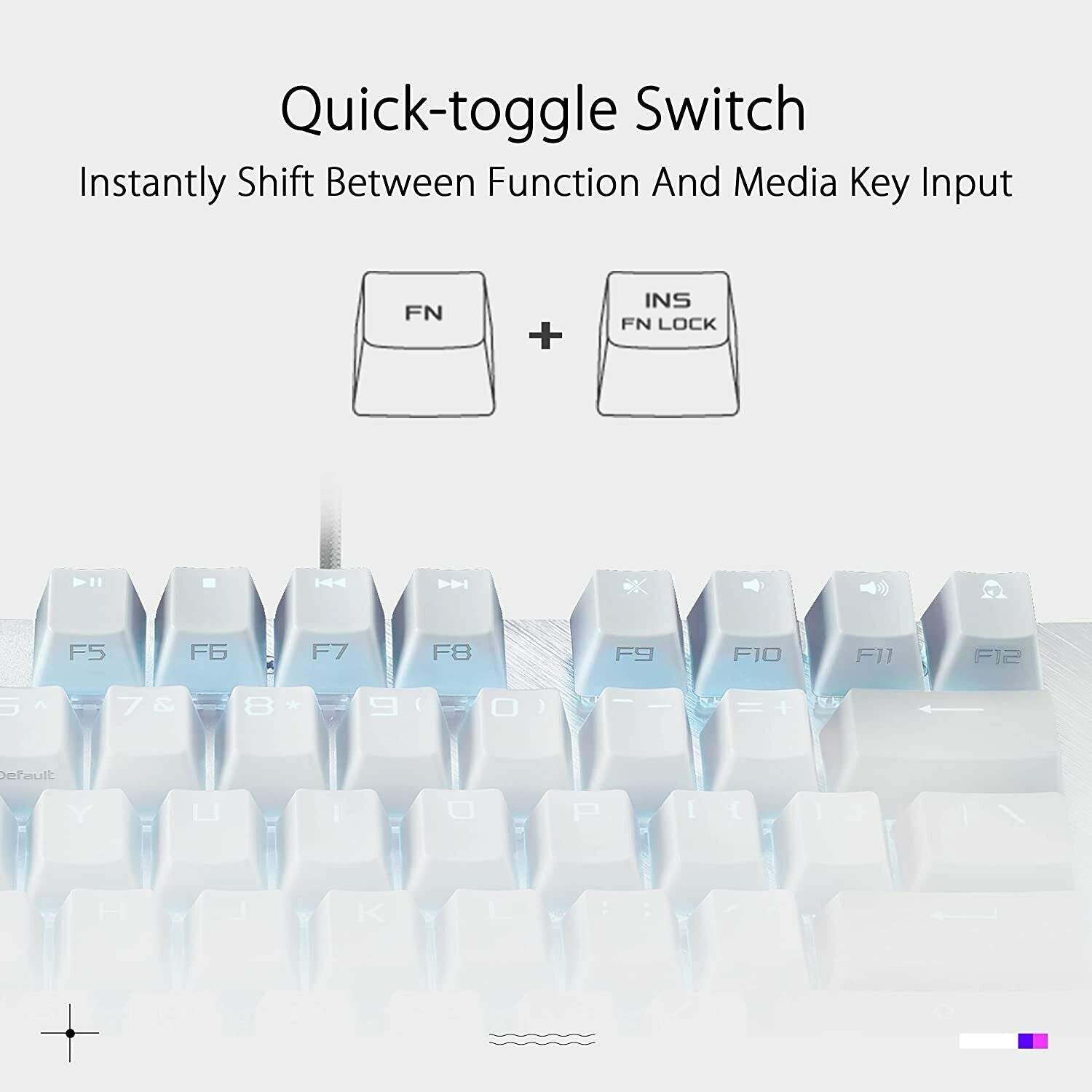 - Quick toggle switch: instantly switch between function and media key inputs