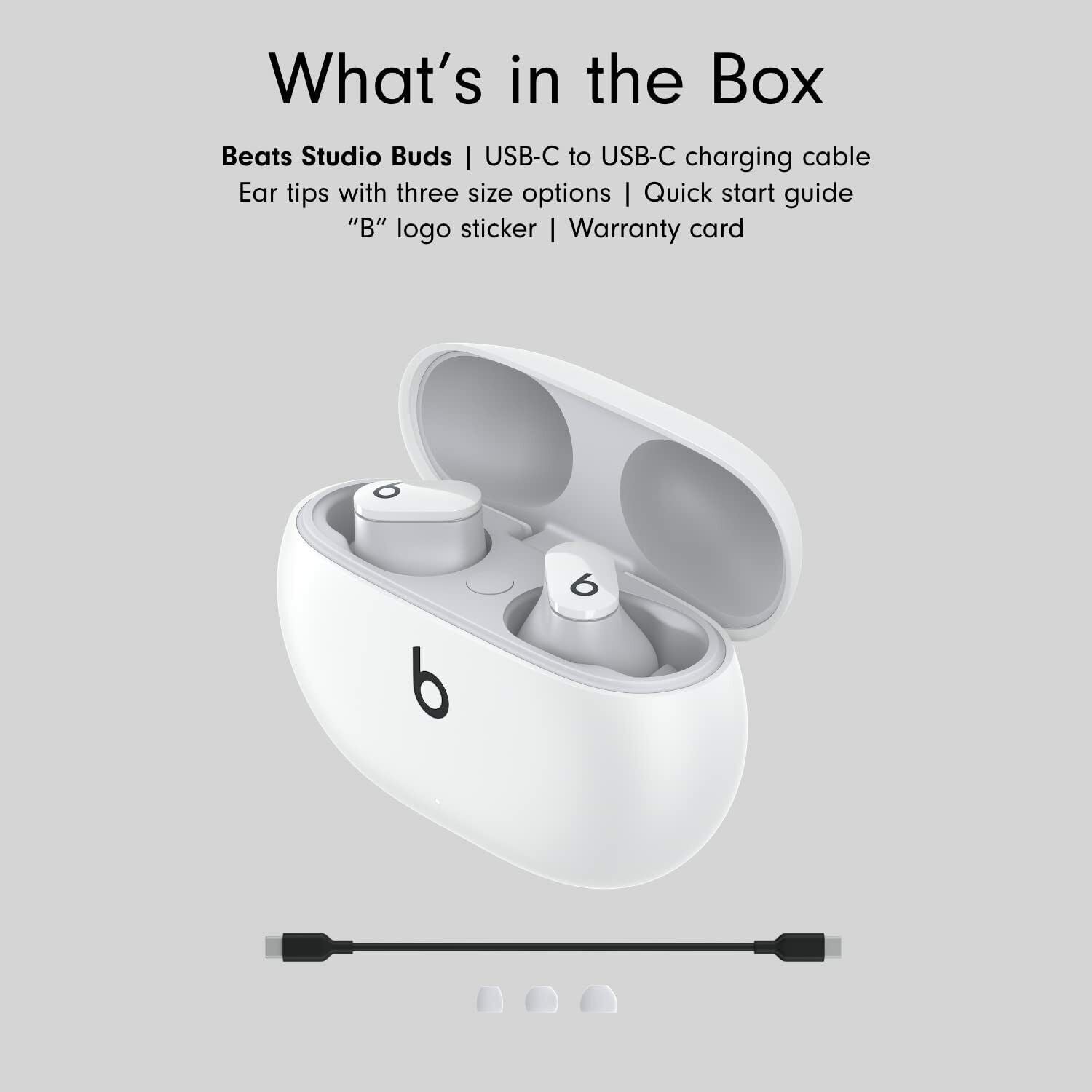 This item is - Beats Studio Buds – True Wireless Noise Cancelling Earbuds – IPX4 rating, Sweat Resistant Earphones, Compatible with Apple & Android, Class 1 Bluetooth, Built-in Microphone – White