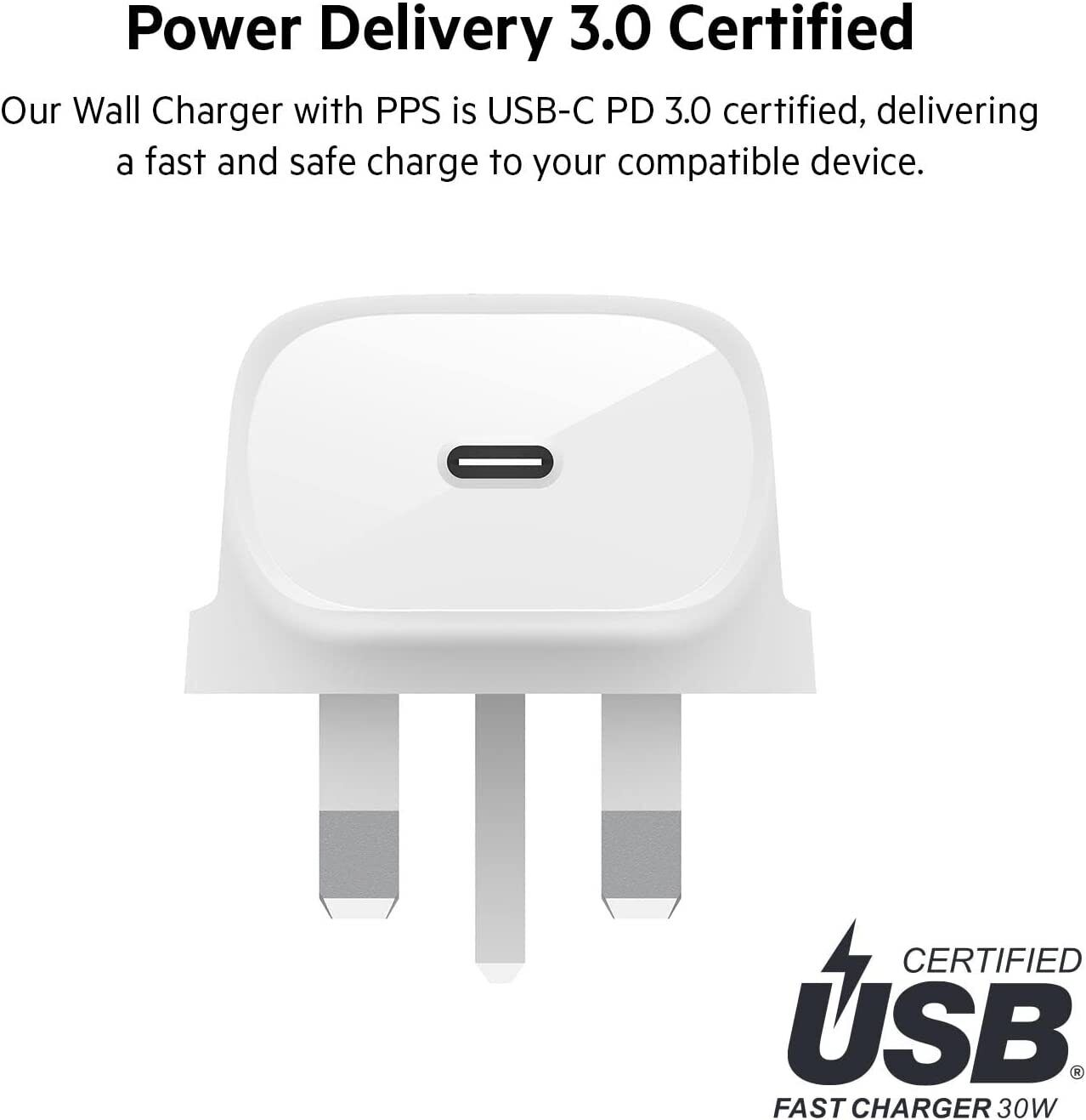 Belkin 30W USB C Wall Charger with USB-C to C Cable, PPS, PowerDelivery