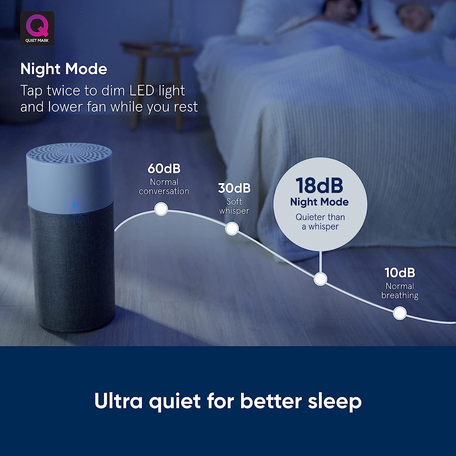- ULTRA QUIET: Quieter than a whisper at only 18 dB (A) on low fan speed. Certified by Quiet Mark and perfect for a good night’s sleep