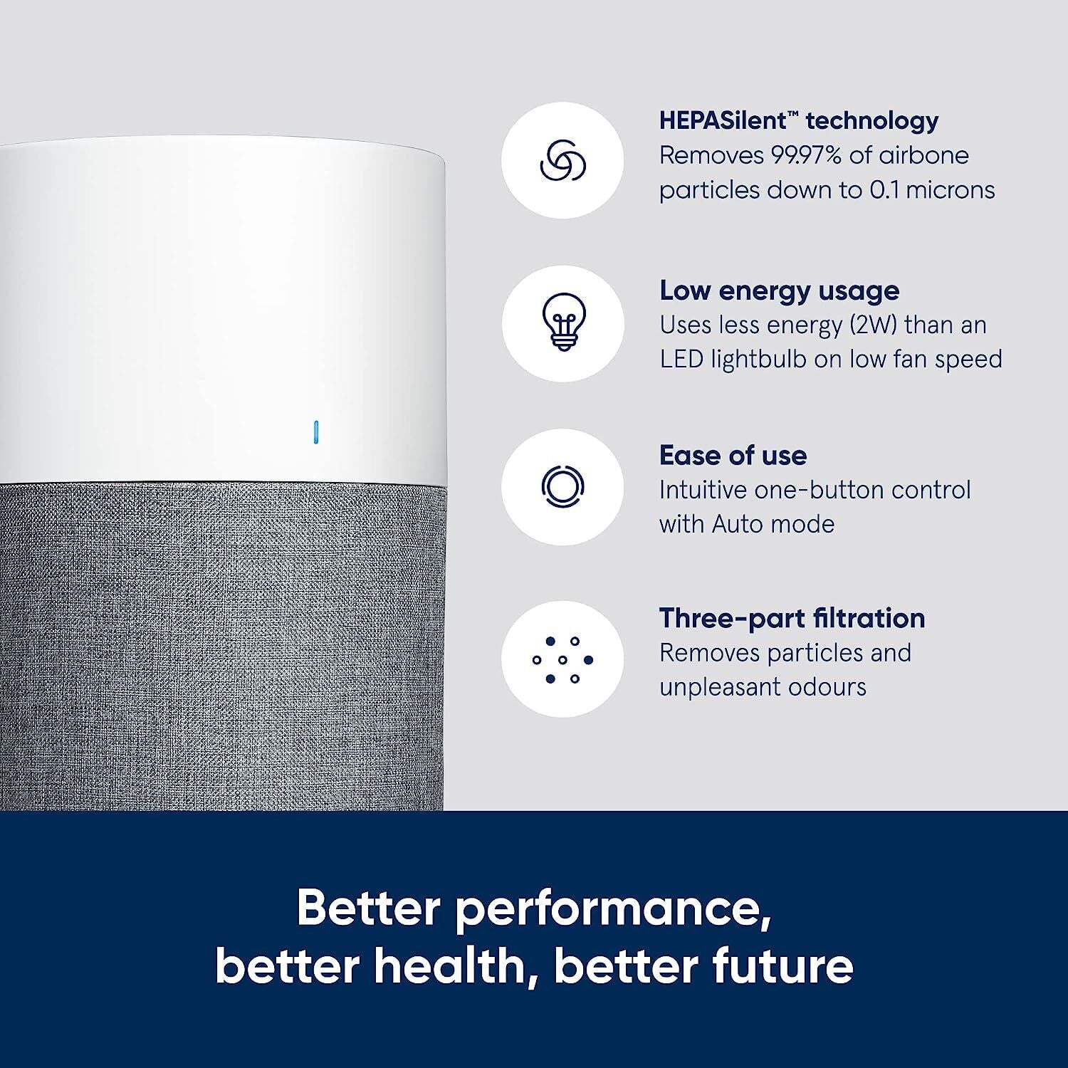 - PRE-FILTER: Includes a machine-washable pre-filter in grey that helps extend the life of the main filter. Match your decor with a choice of different colour options