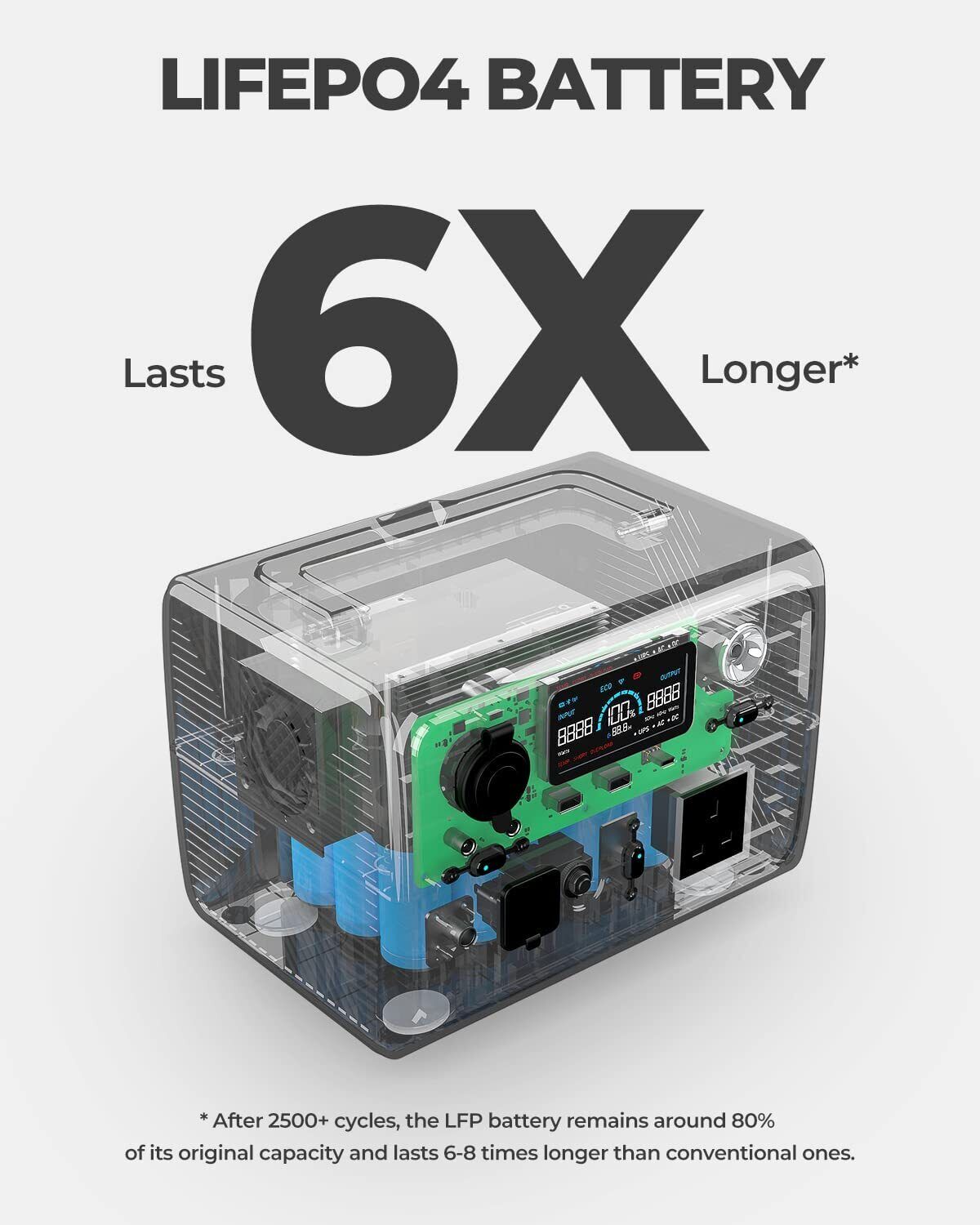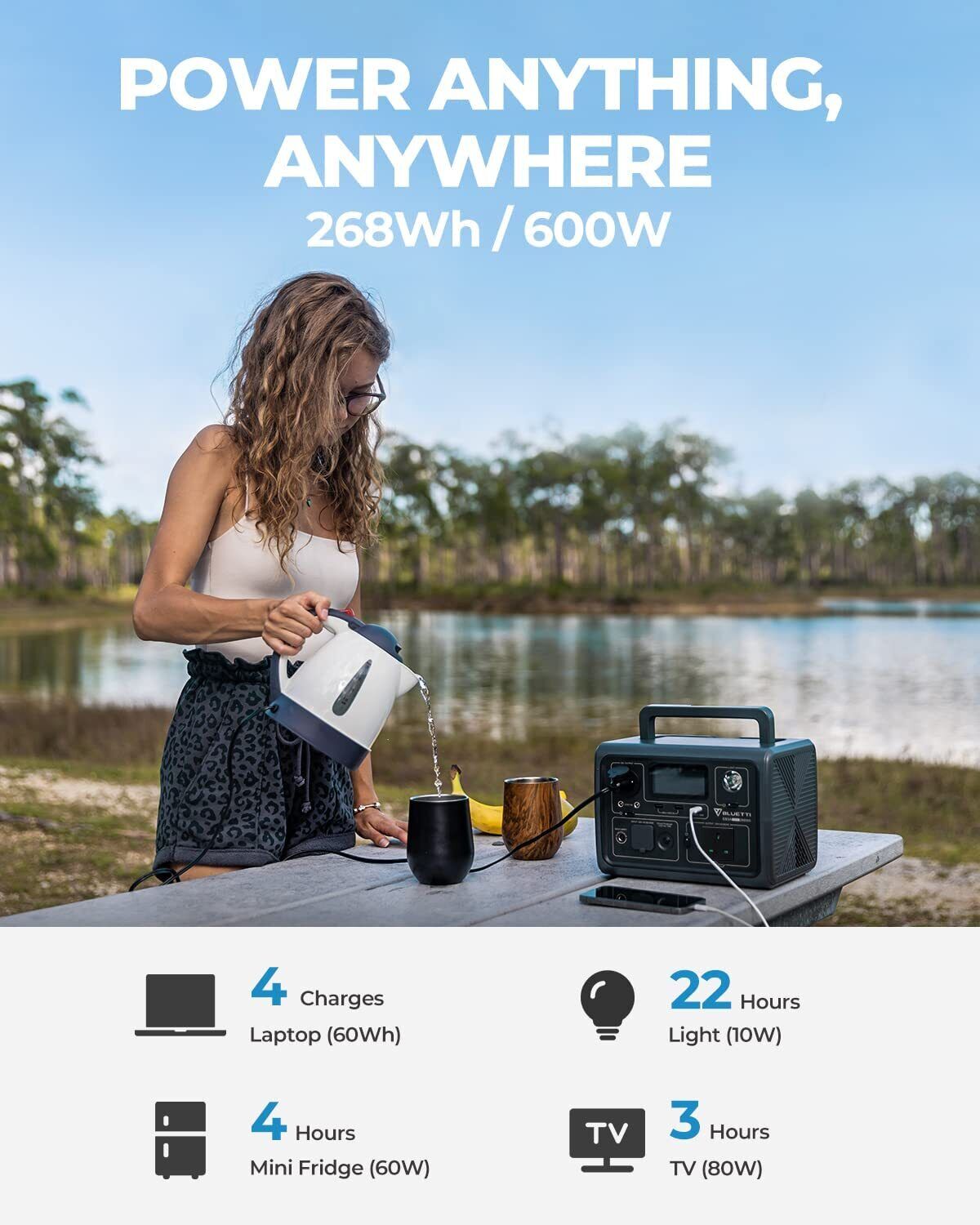 - [Tiny but Mighty] - With a 600W AC inverter, 268Wh LiFePO4 battery pack, and 9 outlets, this power station will keep your essential devices powered on the go or during a home power outage.
