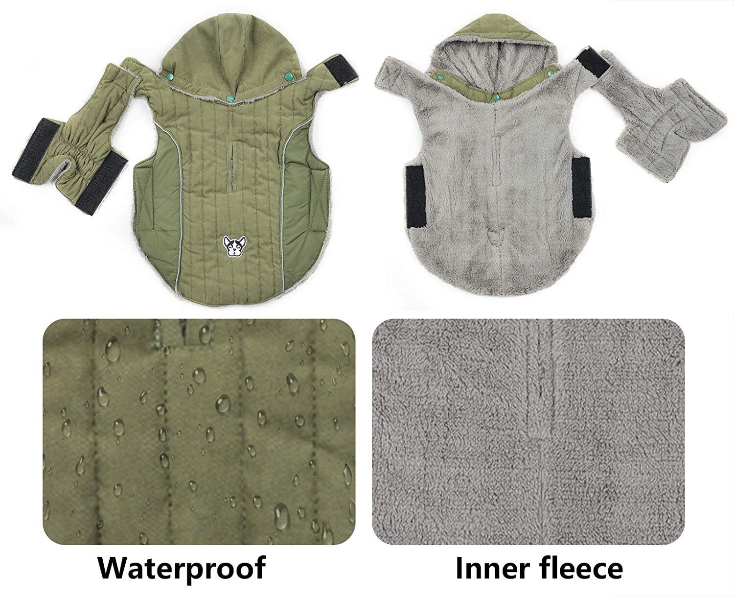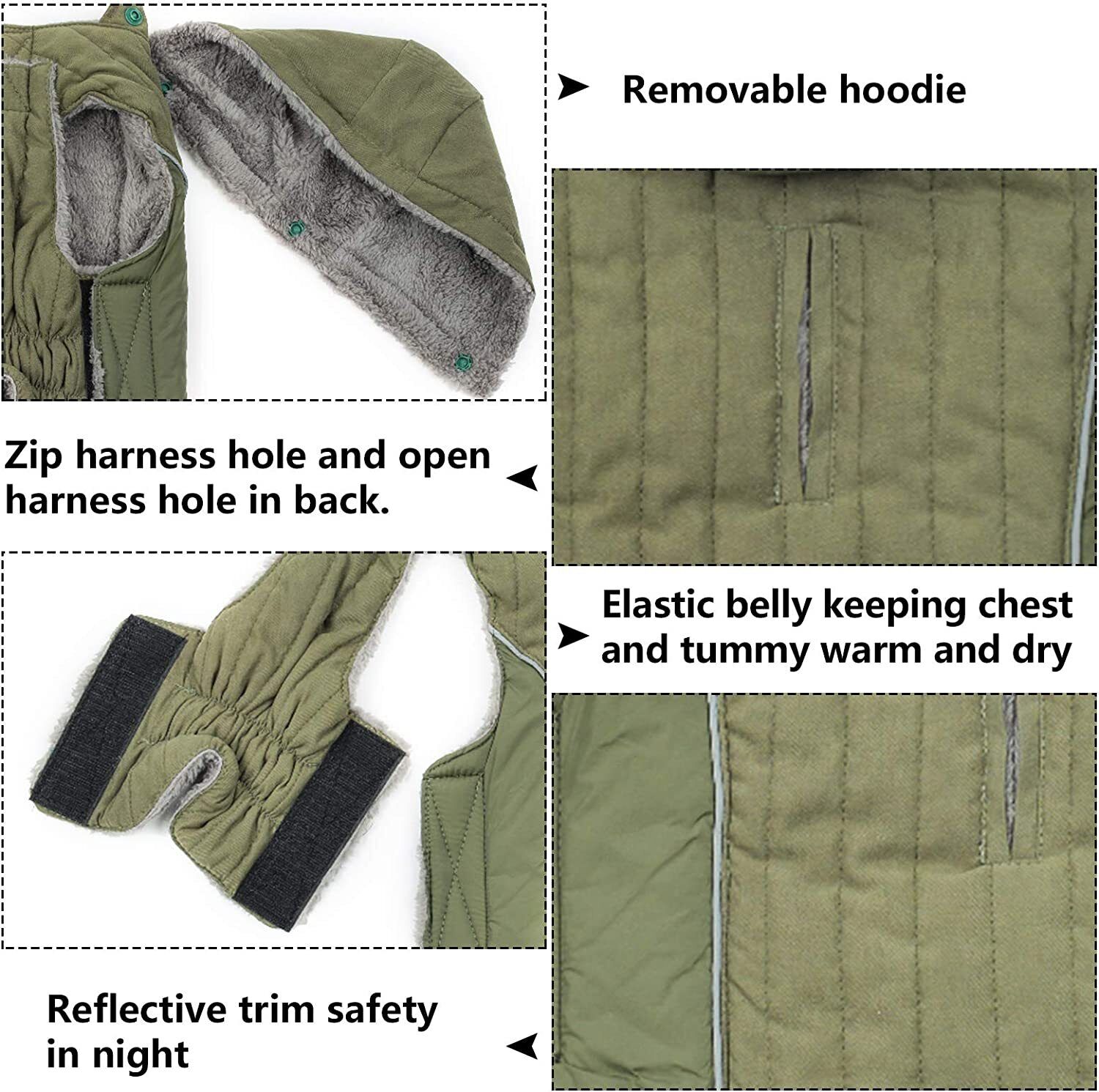 This item is - Ctomche Fleece and Cotton Lining Extra Warm Dog Hoodie in Winter,Outdoor Sport Windproof Dog Jacket Winter Warm Large Dog Coat with Harness Hole Green-XL