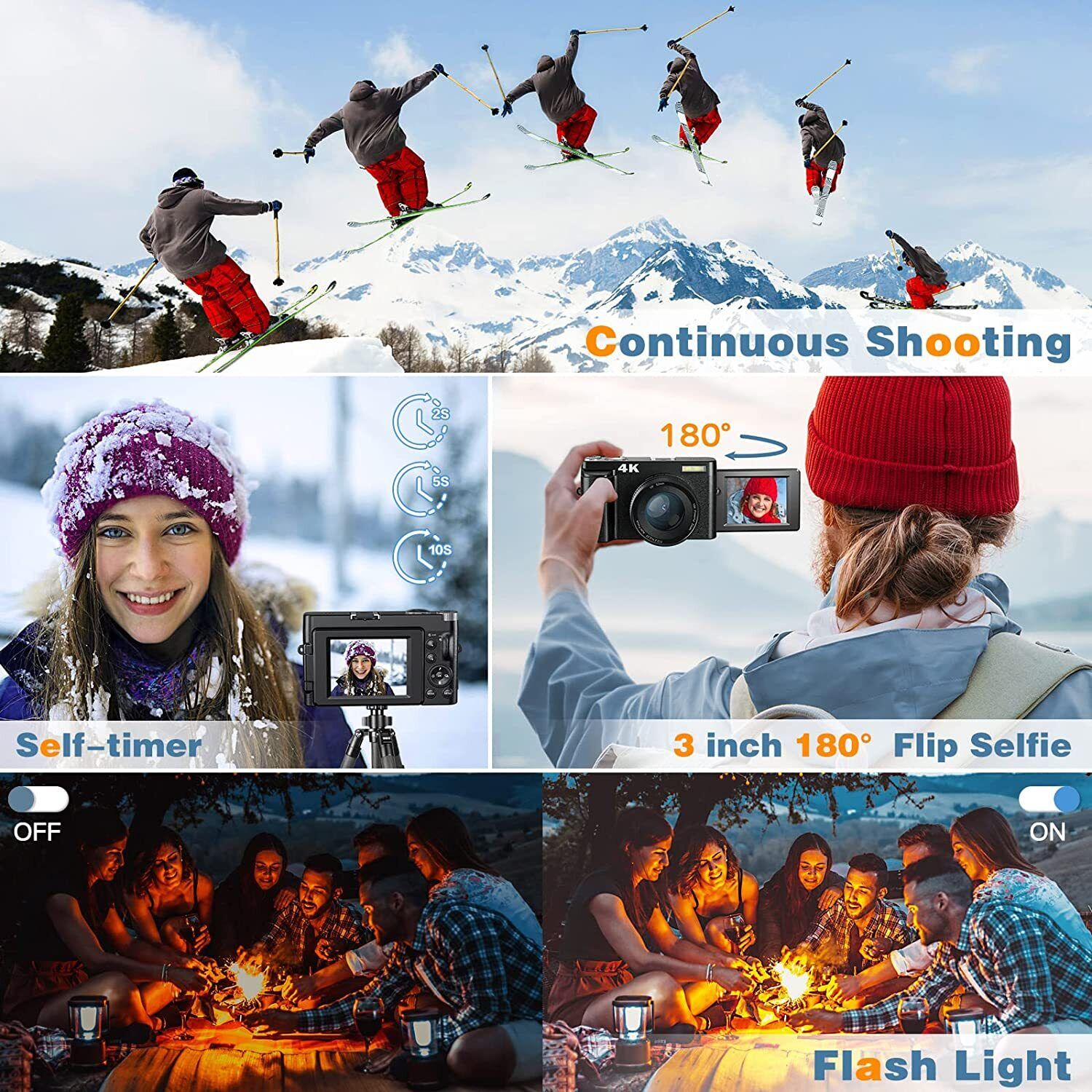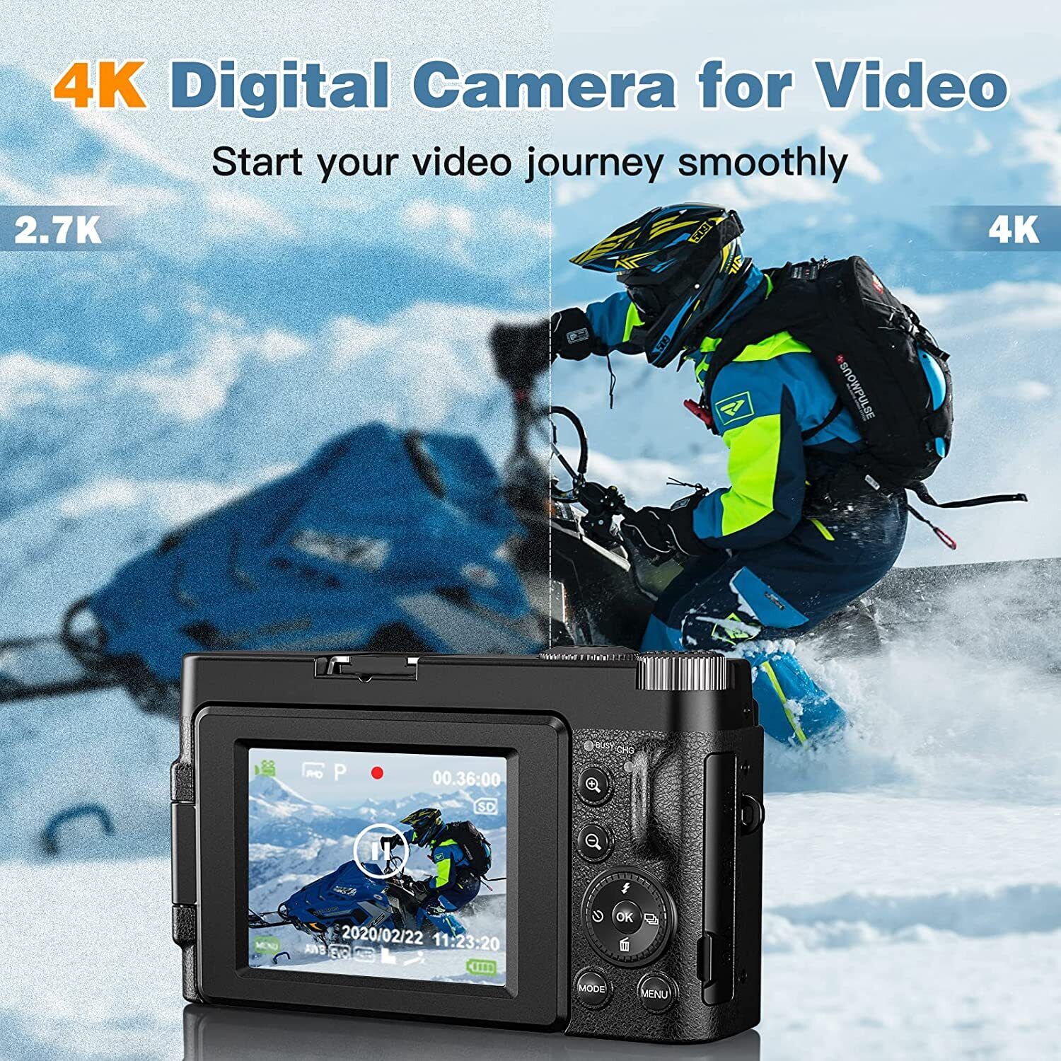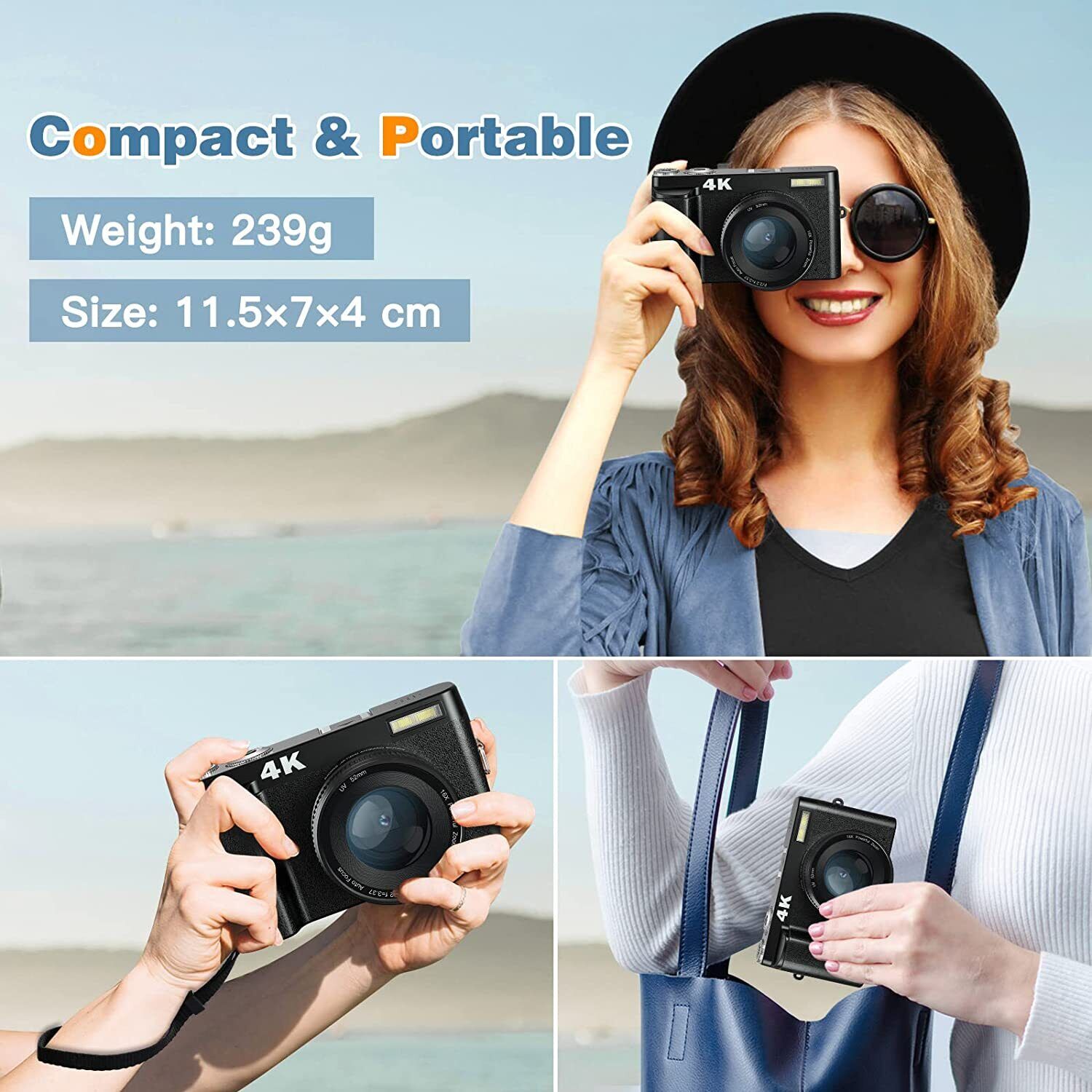 - 【Perfect Gift for Sharing Joy】Fashion digital camera for beginners teens students is full-featured and easy to operate! The 4K photo and video camera make everyone use it easily in home life, social software, travel, or photography! Also, This small camera is the ideal gift for lovers, friends, children, or parents for Valentine's Day, Thanksgiving, Christmas, or a birthday! Share your fun with this point-and-shoot camera.