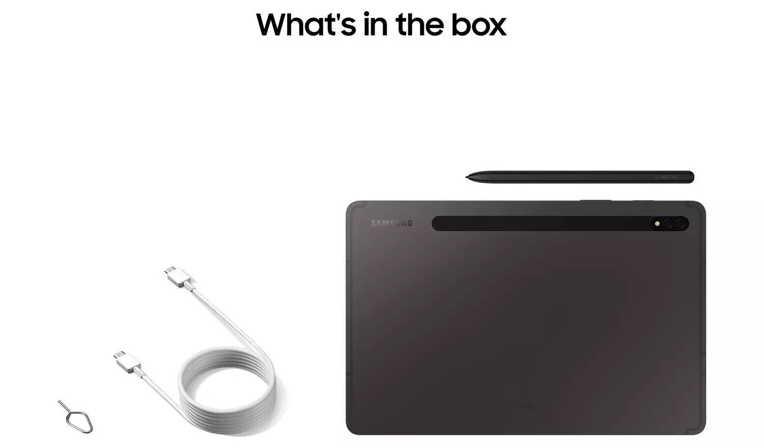 - In the box: S Pen, Data Cable (USB Type-C, 1.8m), Quick Start Guide.