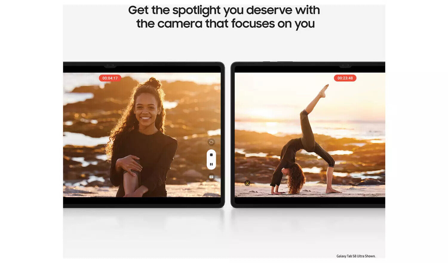 Connected to what matters - Staying connected is more important than ever. Galaxy Tab S8 makes that easy. Join calls from anywhere with Google Duo. And with three microphones, and an Ultra- Wide Front Camera that reads the room – you've never looked and sounded so good.