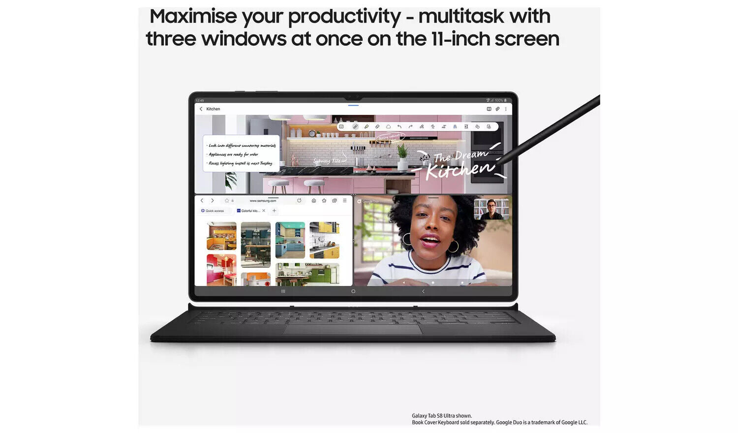 Multi-taskers take note - Whatever you want to do, do even more of it with Galaxy Tab S8. Open up to three apps side-by-side with Multi Window then make notes or get creative with S Pen. It's the ultimate in productivity.