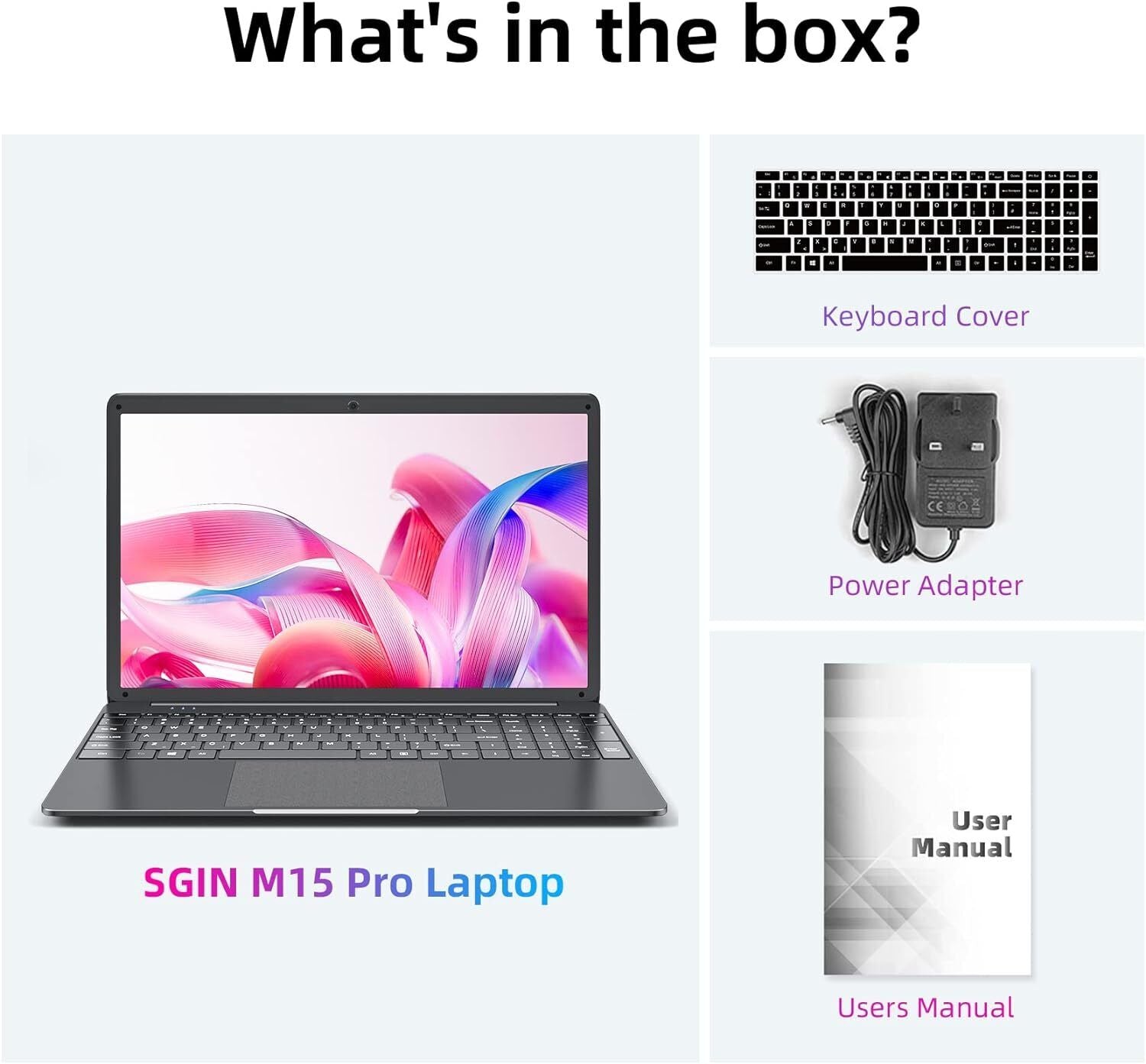 SGIN 15.6 Inch Laptop Windows 11 8GB RAM 256GB SSD Celeron Quad-Core Up to 2.8GH