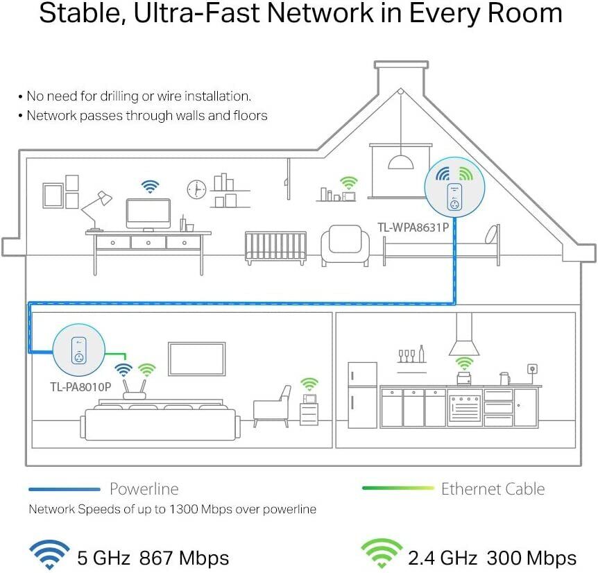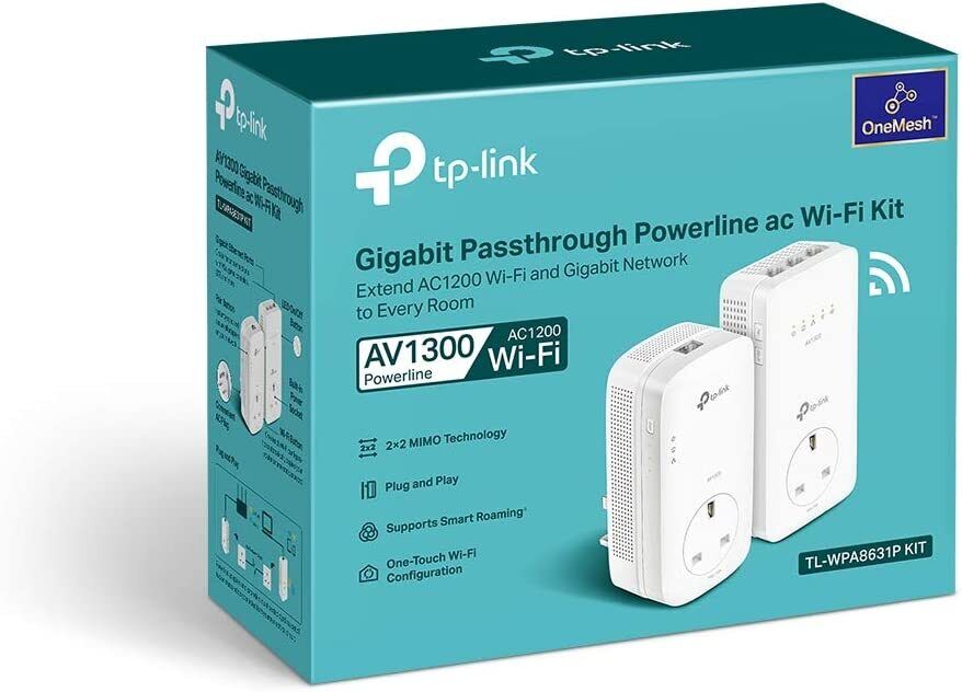 This item is - TP-Link AV1300 Gigabit Passthrough Powerline ac Wi-Fi Kit,up to 1200 Mbps WiFi speed,Wi-Fi Extender,Extra Power Socket,Works with OneMesh,No Configuration Required,UK Plug (TL-WPA8631P KIT),White