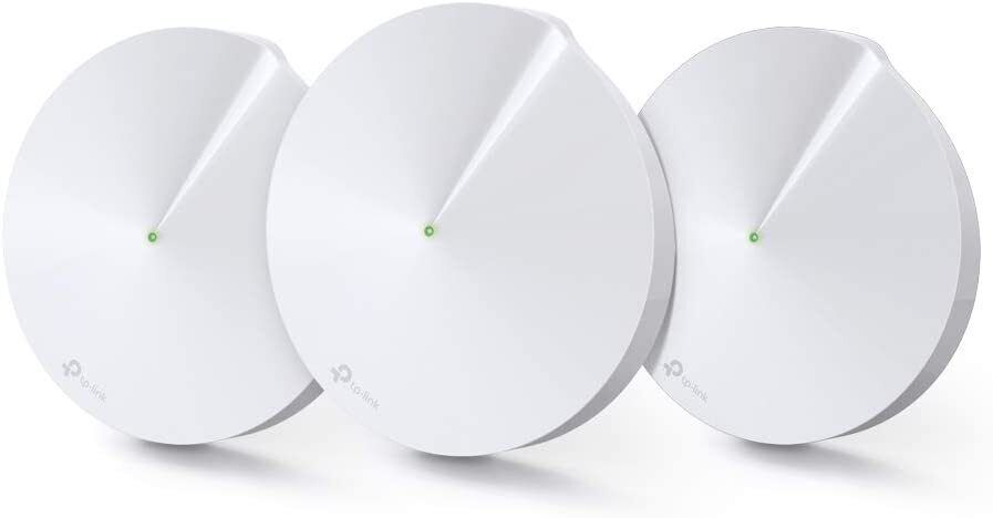 This item is - TP-Link Deco M9 Plus Whole Home Mesh Wi-Fi System, Up to 6500 Sq ft coverage, Tri-Band AC2200 with Gigabit Ports, Compatible with Amazon Echo/Alexa, HomeCare Antivirus and Parental Controls, Pack of 3