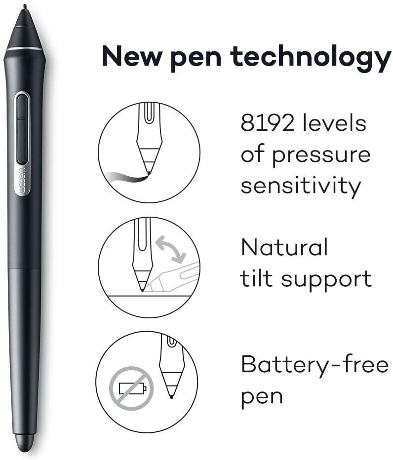 - Thanks to the included Wacom Pro Pen 2 with 8192 pen pressure levels, 60 levels of tilt recognition in every direction, the Wacom pad ensures maximum precision and provides most natural writing feel