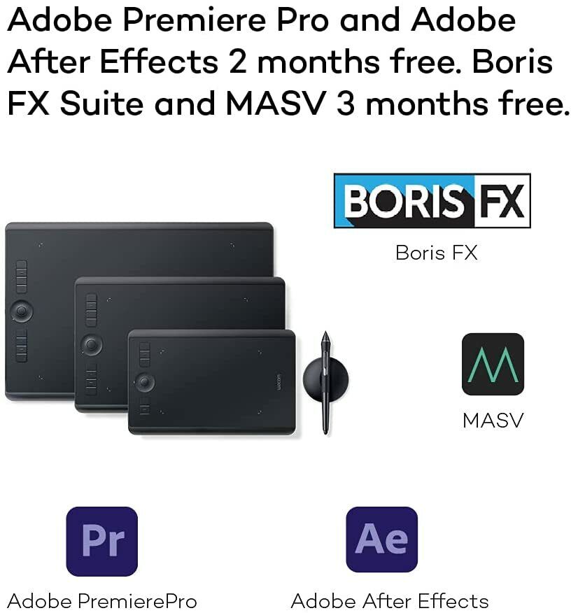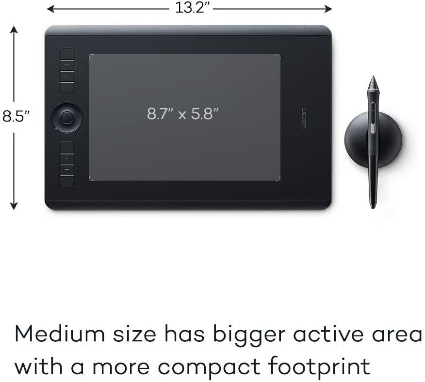 - Items delivered: Wacom Intuos Pro M for right and left-handed use/Battery-free Wacom Pro Pen 2/pen stand included six standard nibs, four felt nibs/USB cable/Quick start guide