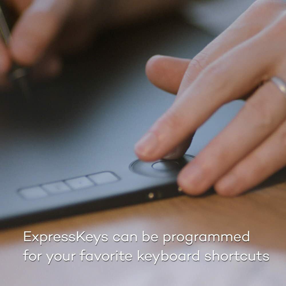 - The 8 individually adjustable ExpressKeys in combination with the customisable touch ring and the multi-touch surface offer an especially intuitive way of working and increase workflow