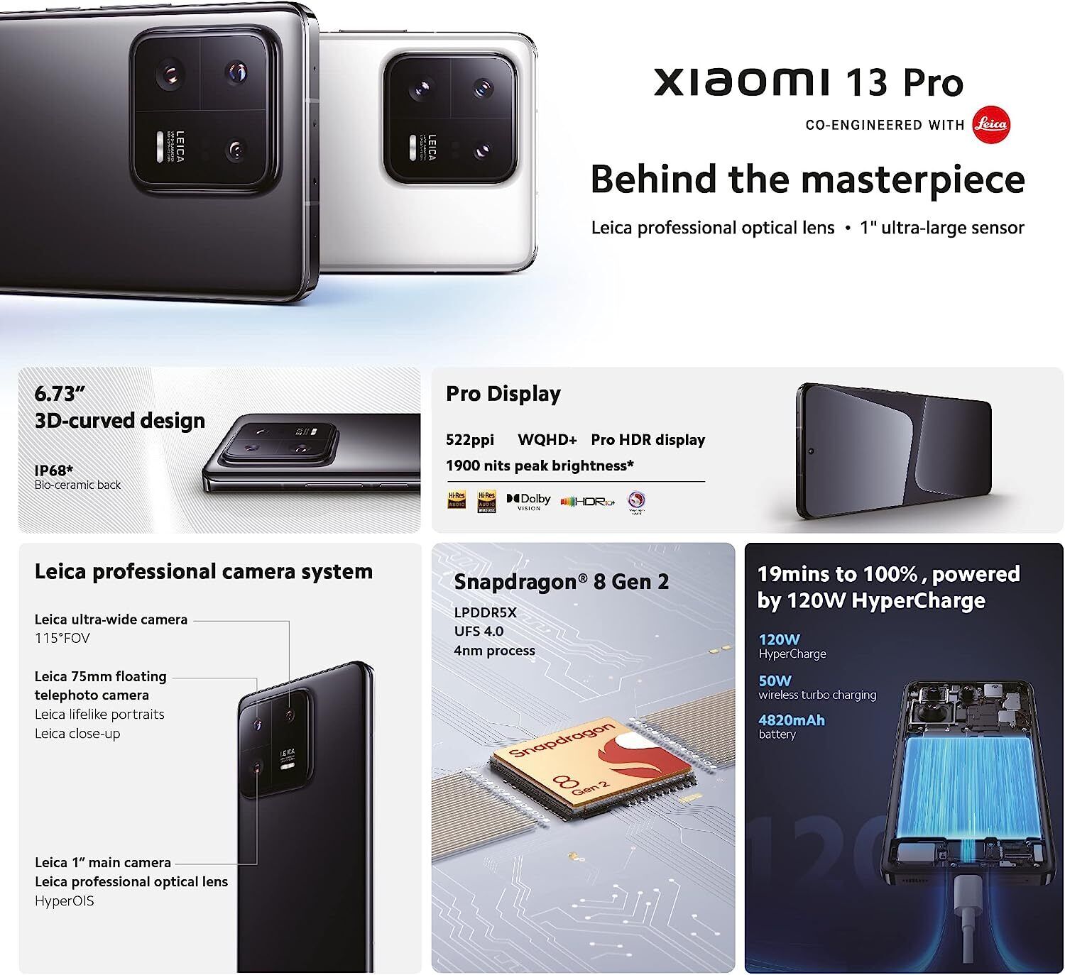 Xiaomi 13 Pro Ceramic Black 12GB RAM 256GB ROM, WQHD+ dynamic 120Hz AMOLED displ